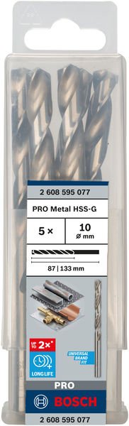 PRO Metal HSS-G Spiralbohrer, 10 x 87 x 133 mm, 5-tlg.