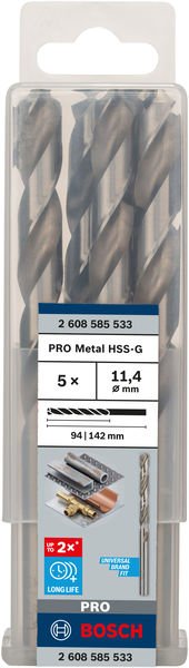 PRO Metal HSS-G Spiralbohrer, 11,4 x 94 x 142 mm, 5-tlg.