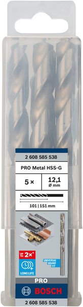 PRO Metal HSS-G Spiralbohrer, 12,1 x 101 x 151 mm, 5-tlg.