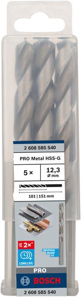 PRO Metal HSS-G Spiralbohrer, 12,3 x 101 x 151 mm, 5-tlg.