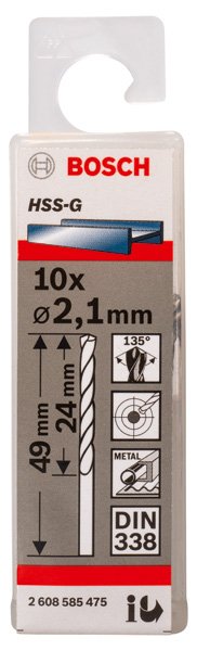 PRO Metal HSS-G Spiralbohrer, 2,1 x 24 x 49 mm, 10-tlg.