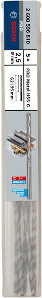 PRO Metal HSS-G Spiralbohrer, 2,5 x 62 x 95 mm, 5-tlg.