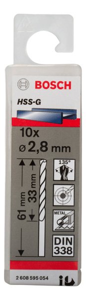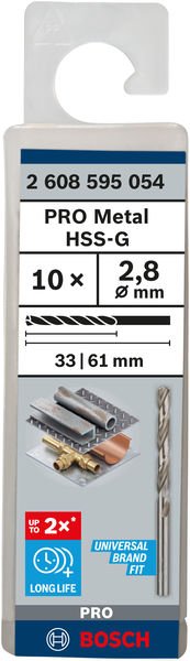PRO Metal HSS-G Spiralbohrer, 2,8 x 33 x 61 mm, 10-tlg.