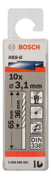 PRO Metal HSS-G Spiralbohrer, 3,1 x 36 x 65 mm, 10-tlg.
