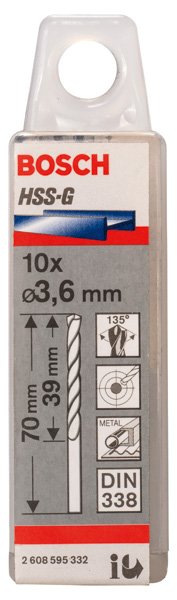 PRO Metal HSS-G Spiralbohrer, 3,6 x 39 x 70 mm, 10-tlg.