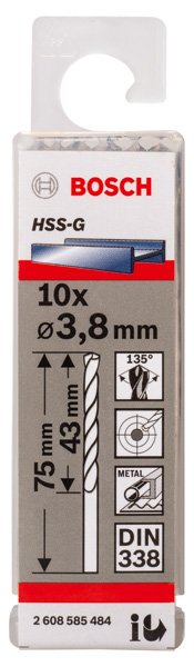 PRO Metal HSS-G Spiralbohrer, 3,8 x 43 x 75 mm, 10-tlg.