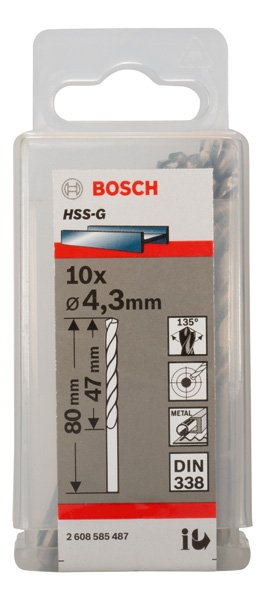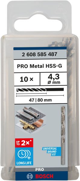 PRO Metal HSS-G Spiralbohrer, 4,3 x 47 x 80 mm, 10-tlg.