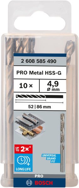 PRO Metal HSS-G Spiralbohrer, 4,9 x 52 x 86 mm, 10-tlg.