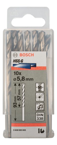 PRO Metal HSS-G Spiralbohrer, 5,8 x 57 x 93 mm, 10-tlg.
