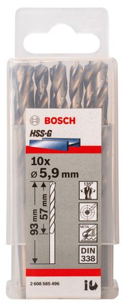 PRO Metal HSS-G Spiralbohrer, 5,9 x 57 x 93 mm, 10-tlg.