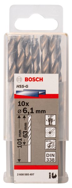 PRO Metal HSS-G Spiralbohrer, 6,1 x 63 x 101 mm, 10-tlg.