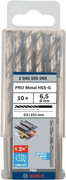 PRO Metal HSS-G Spiralbohrer, 6,5 x 63 x 101 mm, 10-tlg.
