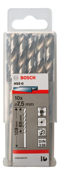 PRO Metal HSS-G Spiralbohrer, 7,5 x 69 x 109 mm, 10-tlg.