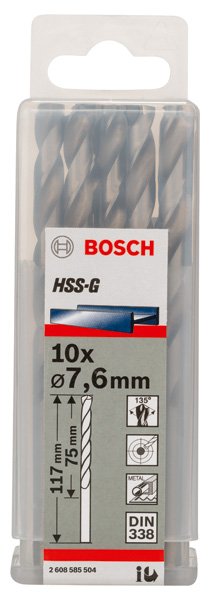 PRO Metal HSS-G Spiralbohrer, 7,6 x 75 x 117 mm, 10-tlg.
