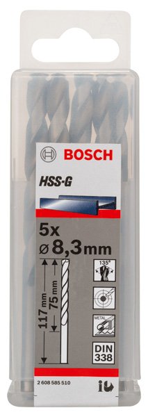 PRO Metal HSS-G Spiralbohrer, 8,3 x 75 x 117 mm, 5-tlg.