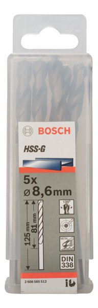 PRO Metal HSS-G Spiralbohrer, 8,6 x 81 x 125 mm, 5-tlg.