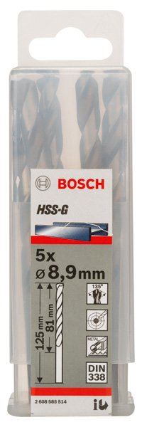 PRO Metal HSS-G Spiralbohrer, 8,9 x 81 x 125 mm, 5-tlg.