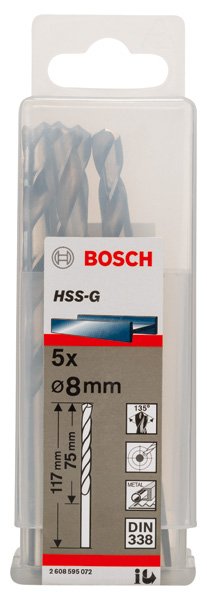 PRO Metal HSS-G Spiralbohrer, 8 x 75 x 117 mm, 5-tlg.