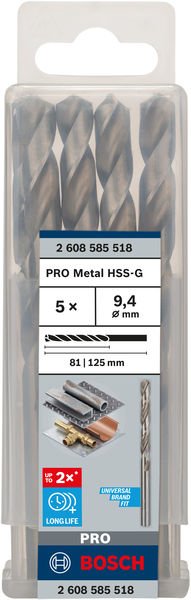 PRO Metal HSS-G Spiralbohrer, 9,4 x 81 x 125 mm, 5-tlg.