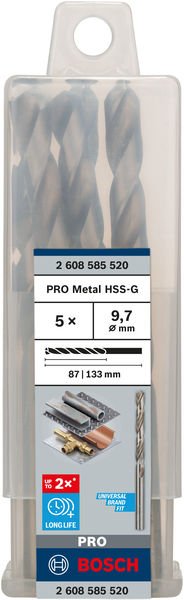 Produktinformationen "PRO Metal HSS-G Spiralbohrer, 9,7 x 87 x 133 mm, 5-tlg."