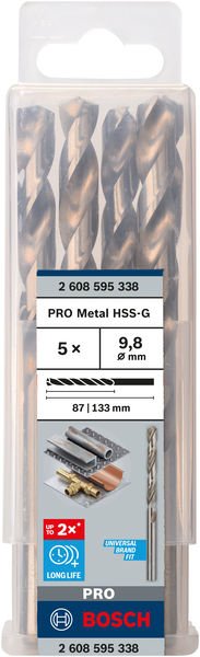 PRO Metal HSS-G Spiralbohrer, 9,8 x 87 x 133 mm, 5-tlg.