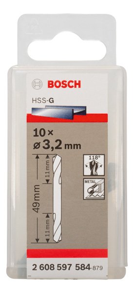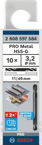PRO Metal HSS-G Spiralbohrer mit Doppelklinge, 3,2 x 11 x 49 mm, 10-tlg.