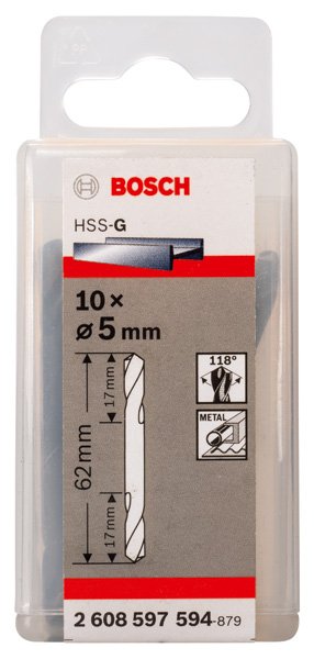 PRO Metal HSS-G Spiralbohrer mit Doppelklinge, 5 x 17 x 62 mm, 10-tlg.
