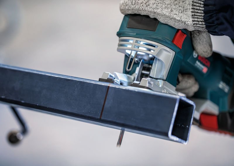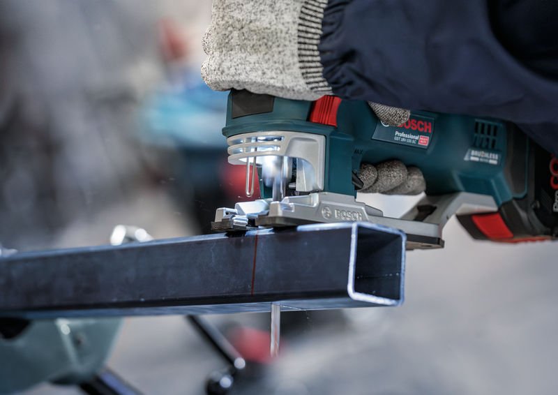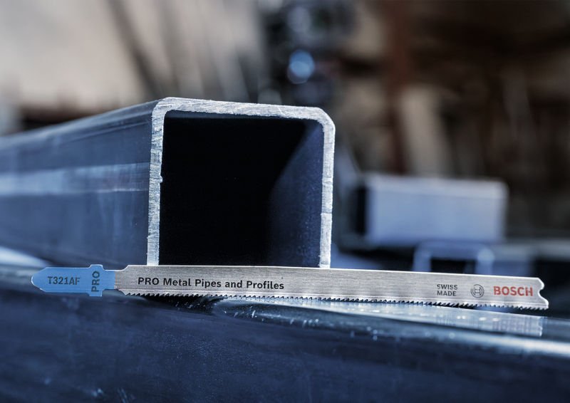 Herausragende Lebensdauer in Metallrohren und -profilen! Bi-Metall Blatt: Kombiniert harte Zähne mit flexiblem Blattkörper Wenn du Metallrohre und -profile mit einer Stichsäge schneiden möchtest, benötigst du ein Sägeblatt, das hart, flexibel und lang genug ist, um diese Art von Metallteilen effektiv zu bearbeiten. Wie das langlebige PRO Metal Pipes and Profiles T321AF, das wir für diesen Zweck entwickelt haben. Das PRO Metal Pipes and Profiles T321AF Stichsägeblatt besteht aus BI-Metall: Es verfügt über eine Zahnleiste aus Schnellarbeitsstahl (HSS), die mit einem Körper aus Kohlenstoffstahl (HCS) verbunden ist. Dadurch ist es langlebig und weist die Härte auf, die du zum Schneiden von Metallrohren und -profilen mit Wandstärken bis zu 3 mm benötigst. Der konische Körper des Blatts, die dünne Schnittfuge und die stark gefrästen, gewellten Zähne sorgen für einen gleichmäßigen Schnitt. Seine erweiterte Länge ermöglicht das Schneiden von Rohren und Profilen bis zu einem Durchmesser von 65 mm.