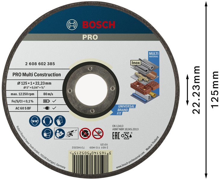 Effektives Schneiden verschiedener Baumaterialien! Körnungen auf Basis von Siliziumcarbid und Aluminiumoxid für Stärke und Vielseitigkeit Bei der Arbeit auf einer Baustelle müssen häufig verschiedene Baumaterialien zugeschnitten werden. Mit einer vielseitigen Trennscheibe sparst du Zeit und Energie. Aus diesem Grund haben wir PRO Multi Construction entwickelt. Durch die spezielle Schleifmittelmischung können wir sicherzustellen, dass unterschiedliche Materialien effektiv geschnitten werden. Die PRO Multi Construction Gebundene Trennscheibe ist eine gute Wahl für Bauarbeiter, die verschiedene Materialien schneiden müssen. Die Scheibe besteht aus einer Mischung aus Silizium-Carbide‑ und Aluminiumoxid-Körnern, damit sie durch Stahl, Metall, Stein, Ziegelstein und Kunststoff schneiden kann. Dank der dünnen Schnittfuge arbeitest du geräuschärmer und erhältst saubere, präzise Schnitte – und das bei nur geringem Druck.