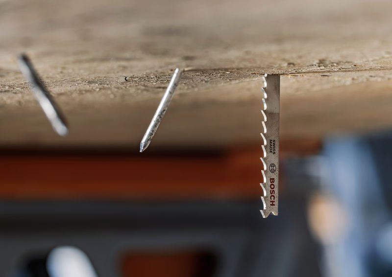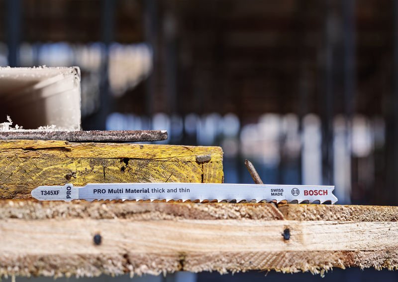 Herausragende Lebensdauer beim Schneiden verschiedener Materialien! Bi-Metall Blatt: Kombiniert harte Zähne mit flexiblem Blattkörper Wenn du Holz schneidest, kann ein Nagel oder eine Schraube ein normales Stichsägeblatt leicht beschädigen. Für dieses vielseitige PRO Multi Material thick and thin T345XF ist das kein Problem. Wir haben es entwickelt, damit du schnelle, gerade Schnitte in Werkstücke unterschiedlicher Dicke mit Verbindungselementen aus Stahl in Standardstärke machen kannst. Das PRO Multi Material thick and thin T345XF besteht aus BI-Metall: Es verfügt über eine Zahnleiste aus Schnellarbeitsstahl (HSS), die mit einem elastischeren Körper aus Kohlenstoffstahl (HCS) verbunden ist. Dadurch bekommst du die Härte und Flexibilität, die du für die Bearbeitung von Holz mit Metall benötigst. Die gefrästen, geschränkten Zähne des Stichsägeblatts sorgen für schnelle Schnitte, während die progressive Zahnteilung das Schneiden verschiedener Materialien ermöglicht. Das Blatt ist 132 mm lang, sodass du damit Werkstücke mit einer Dicke von bis zu 65 mm schneiden kannst.