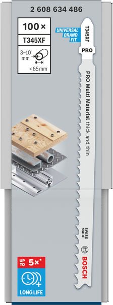 PRO Multi Material thick and thin T345XF Stichsägeblatt, 132 mm, 100-tlg.