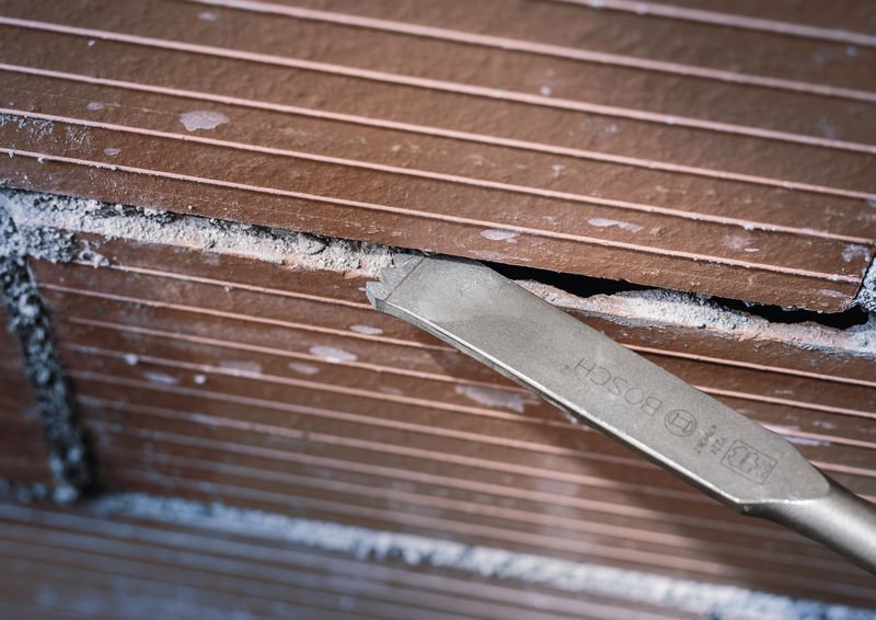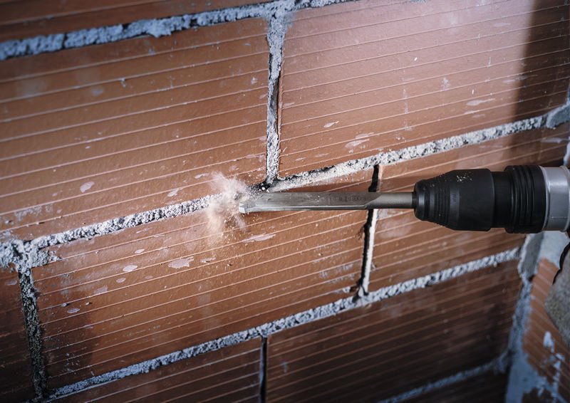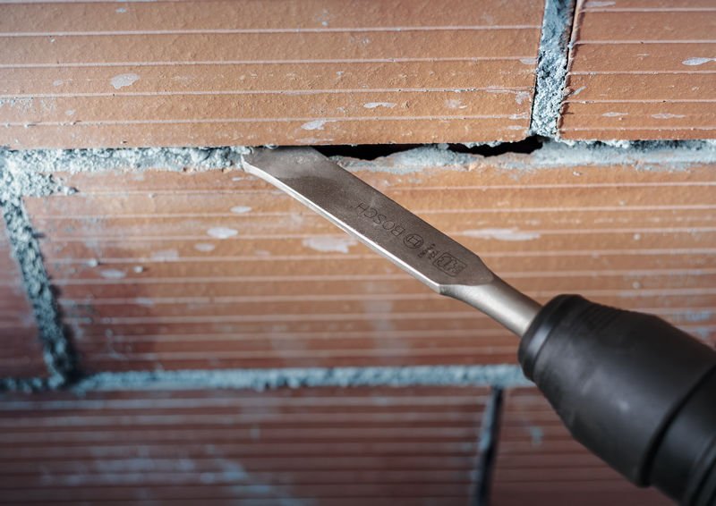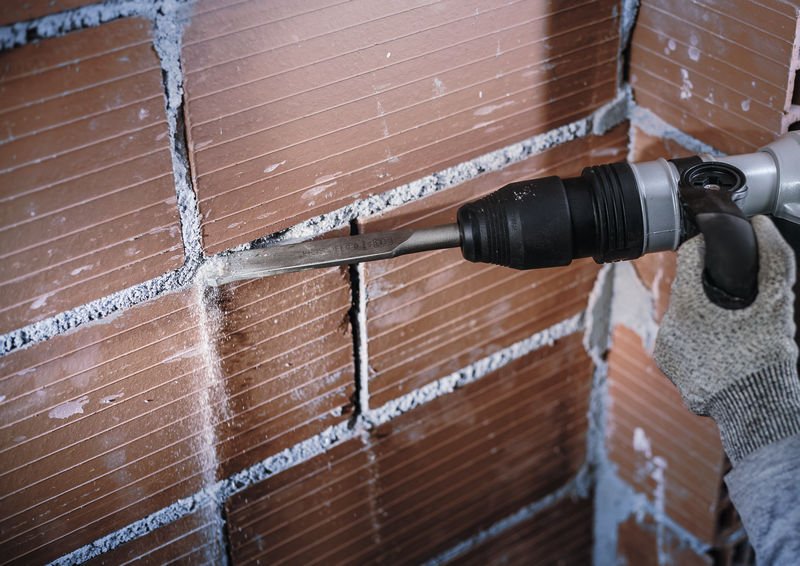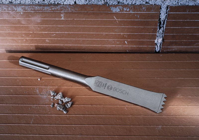 Langlebige Mörtelentfernung! Die gezahnte Spitze ermöglicht den effizienten Einsatz über lange Zeit Bei der Sanierung von Ziegelmauerwerk dürfen die Ziegel nicht beschädigt werden. Wir haben den langlebigen und leicht zu führenden PRO SDS max-4C Mörtelmeißel für Renovierer entwickelt, die Mörtel aus Fugen in Fensterrahmen, Türrahmen und Mauerwerk herauskratzen müssen, ohne die Ziegel zu beschädigen. Der langlebige PRO SDS max-4C verfügt über eine Carbide-Spitze, mit der du Mörtel effizient abkratzen kannst. Die gezahnte Spitze zerbricht den Mörtel zuverlässig und sorgt für gute Kontrolle des Meißels. Sie verhindert, dass der Meißel in Mörtelfugen stecken bleibt. Die Ziegel sowie Fenster- und Türrahmen bleiben unberührt.
