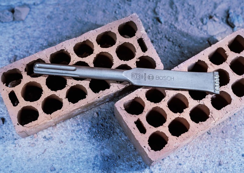 Langlebige Mörtelentfernung! Die Hartmetallspitze ist langlebig und bricht Mörtel effizient auf Bei der Sanierung von Ziegelmauerwerk dürfen die Ziegel nicht beschädigt werden. Wir haben den langlebigen und leicht zu führenden PRO SDS max-5C Mörtelmeißel mit Carbide-Spitze für Renovierer entwickelt, die Mörtel aus Fugen in Fensterrahmen, Türrahmen und Mauerwerk herauskratzen müssen, ohne die Ziegel zu beschädigen. Der langlebige PRO SDS max-5C verfügt über eine Carbide-Spitze, mit der du Mörtel effizient abkratzen kannst. Die Spitze zerbricht den Mörtel zuverlässig und sorgt für eine gute Kontrolle des Meißels. Sie verhindert, dass der Meißel in Mörtelfugen stecken bleibt. Die Ziegel sowie Fenster- und Türrahmen bleiben unberührt.