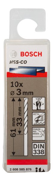 PRO Stainless Steel HSS-Co Spiralbohrer, 3 x 33 x 61 mm, 10-tlg.