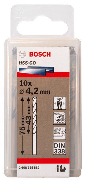 PRO Stainless Steel HSS-Co Spiralbohrer, 4,2 x 43 x 75 mm, 10-tlg.
