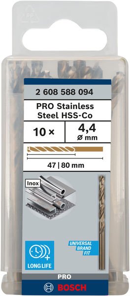 PRO Stainless Steel HSS-Co Spiralbohrer, 4,4 x 47 x 80 mm, 10-tlg.