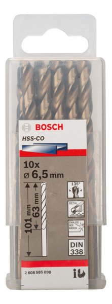 PRO Stainless Steel HSS-Co Spiralbohrer, 6,5 x 63 x 101 mm, 10-tlg.