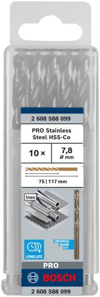 PRO Stainless Steel HSS-Co Spiralbohrer, 7,8 x 75 x 117 mm, 10-tlg.