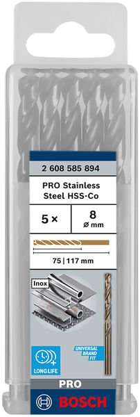 PRO Stainless Steel HSS-Co Spiralbohrer, 8 x 75 x 117 mm, 5-tlg.