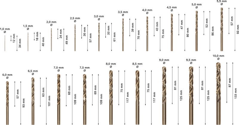 | Anzahl der Bohrer für Edelstahl: | 19 |