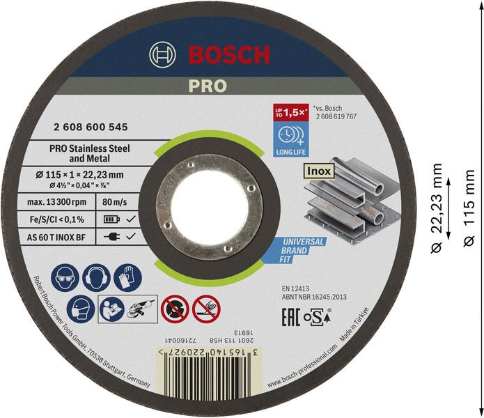 PRO Stainless Steel and Metal Trennscheibe, 115 x 1 x 22.23 mm, gerade, oSa