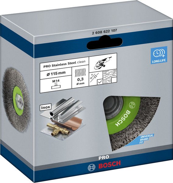 Lange Lebensdauer beim Reinigen von Edelstahl! Gewellter Premium-Draht für leichtere Reinigungsarbeiten Benötigst du eine langlebige Scheibenbürste zum Reinigen von Edelstahl und Werkstücken? Dann ist die PRO Stainless Steel clean Scheibenbürste die richtige Wahl. Sie wurde mit hochwertigem gewellten Draht versehen, damit du eine glatte Oberfläche erhältst – immer und immer wieder. Die PRO Stainless Steel clean Scheibenbürste ist eine langlebige Ergänzung für jede Metallwerkstatt, in der du Edelstahl und Nichteisenmetalle reinigen musst. Sie wurde mit hochwertigem gewellten Draht versehen, damit du auf kleinen Metalloberflächen, Kanten und in Rillen ein feines Finish erhältst.