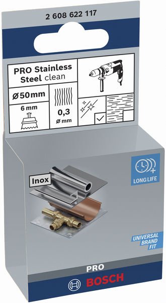 PRO Stainless Steel clean Topfbürste, gerader Schaft, 50 x 0,3 mm