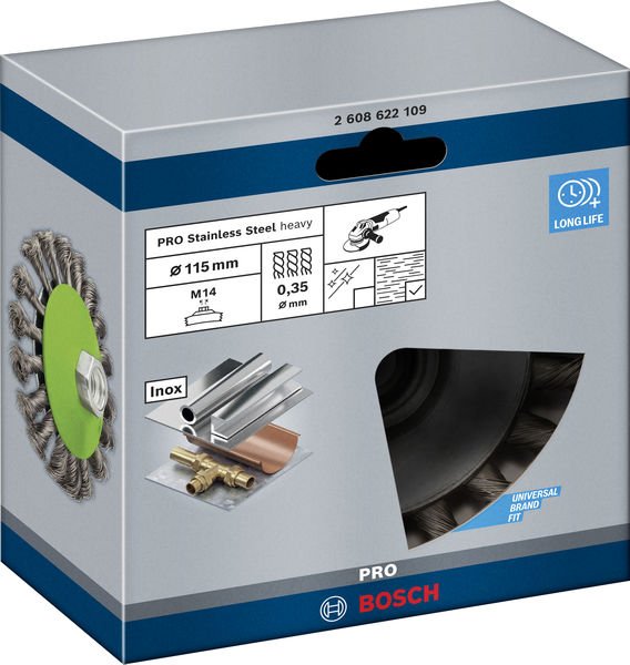 PRO Stainless Steel heavy Kegelbürste, 115 x 0,35 mm, Gewinde