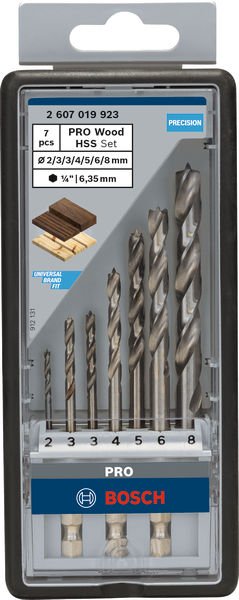 PRO Wood HSS Holzspiralbohrer Set. 7-tlg.
