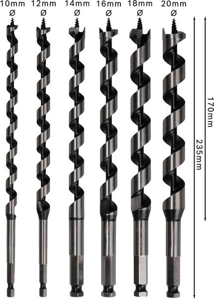 PRO Wood Holzschlangenbohrer Set, L235 mm, 6-tlg.