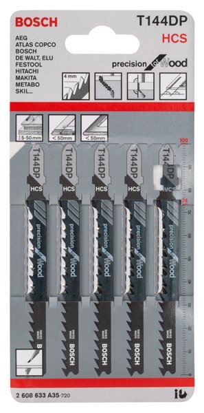 PRO Wood precise T144DP Stichsägeblatt, 100 mm, 5-tlg.