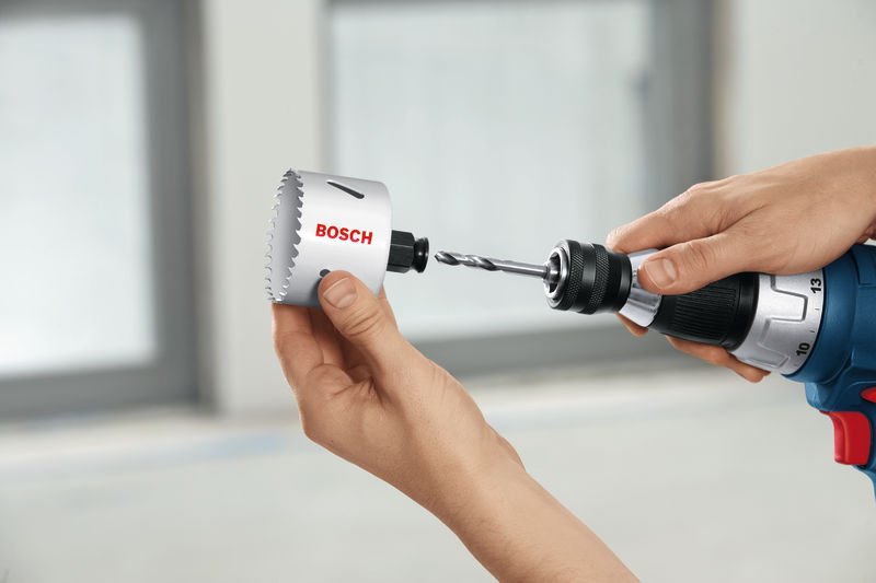 Der Power-Change Adapter verbindet Lochsäge und Elektrowerkzeug so schnell wie kein anderes Quick-Change-System. Dieser einzigartige Adapter verbindet und trennt Lochsäge und Zentrierbohrer mit nur einem Klick. Auch der Bohrkern kann einfach entfernt werden. Dieses komplett schlüssellose System ist schneller und effizienter. Der Power Change-Adapter von Bosch.