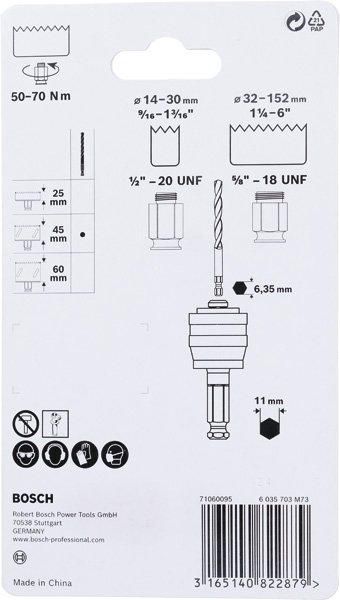 | Geeignet für Lochsägen: | 14 mm, 210 mm |