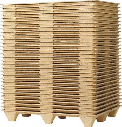 Die leichten und robusten Einwegpaletten sind aus Recycling-Materialien gefertigt.